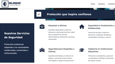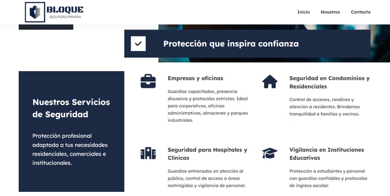 Sitio web diseñado para una empresa de seguridad privada, enfocado en transmitir confianza y solidez.