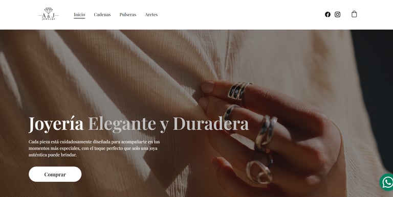 Sitio web diseñado para una joyería, enfocado en resaltar la estética de los productos y transmitir una imagen elegante y confiable.